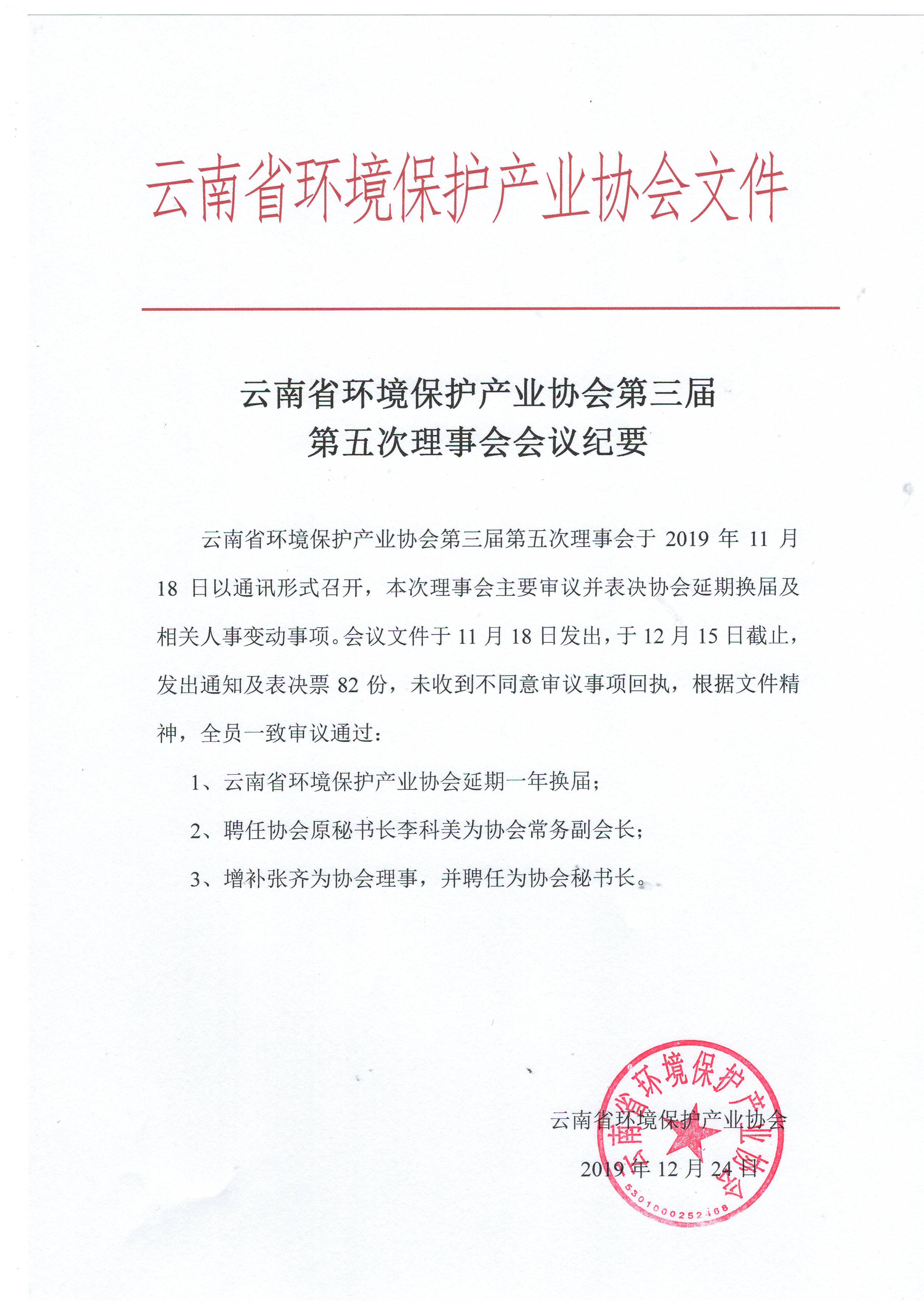 云南省環(huán)境保護產(chǎn)業(yè)協(xié)會第三屆第五次理事會會議紀要