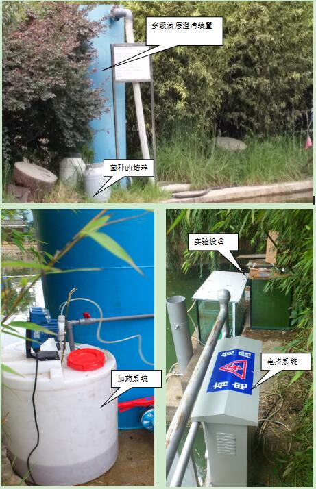 項目采用有效微生物菌技術(shù)結(jié)合循環(huán)凈水工藝對小型湖泊、池塘、水庫等污染匯富營養(yǎng)化水體進行原位、異位結(jié)合修復,首次提出了富營養(yǎng)化水體藻菌共生概念,快速建立水體生態(tài)自凈平衡系統(tǒng),實現(xiàn)對水體富營養(yǎng)化的根本治理。通過對天然沸石超微改性后,配合常用凈水劑復合制得物理型助凝劑(JYX-助凝劑),吸附、脫色、助凝等功能優(yōu)異,可有效吸附水中氮磷。研制出漂移式多功能凈水設(shè)備,集凈化除藻、投菌、充氧、噴泉景觀等功能于一體,具有節(jié)能、降濁、除藻效率高、投資少等優(yōu)點。利用該工藝處理后的水質(zhì)符合地面水環(huán)境質(zhì)量標準中的Ⅲ類水質(zhì)標準。