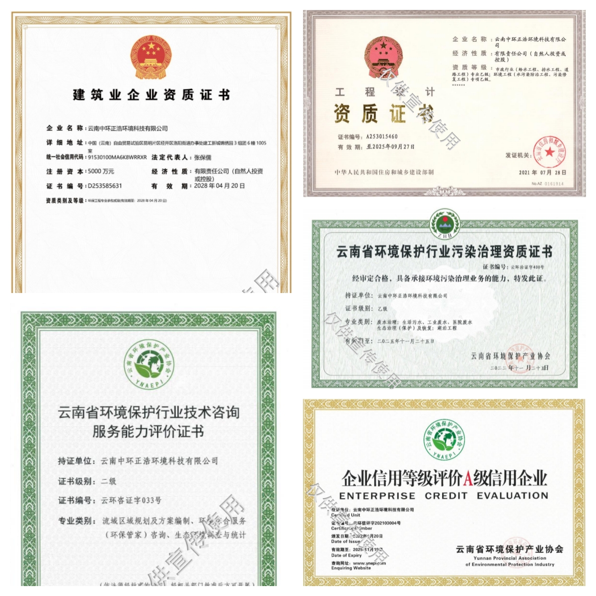 云南中環(huán)正浩環(huán)境科技有限公司成立于2016年12月09日,企業(yè)的經(jīng)營范圍為:許可項目:地質(zhì)災(zāi)害治理工程施工;地質(zhì)災(zāi)害治理工程監(jiān)理;地質(zhì)災(zāi)害治理工程勘查;地質(zhì)災(zāi)害治理工程設(shè)計;各類工程建設(shè)活動;地質(zhì)災(zāi)害危險性評估;建設(shè)工程勘察;建設(shè)工程設(shè)計。一般項目:環(huán)保咨詢服務(wù);生態(tài)資源監(jiān)測;環(huán)境保護監(jiān)測;固體廢物治理;地質(zhì)災(zāi)害治理服務(wù);土壤污染治理與修復(fù)服務(wù);土壤環(huán)境污染防治服務(wù);水污染治理;水環(huán)境污染防治服務(wù);大氣污染治理;大氣環(huán)境污染防治服務(wù);生態(tài)恢復(fù)及生態(tài)保護服務(wù);技術(shù)服務(wù)、技術(shù)開發(fā)、技術(shù)咨詢、技術(shù)交流、技術(shù)轉(zhuǎn)讓、技術(shù)推廣;專業(yè)保潔、清洗、消毒服務(wù);環(huán)境保護專用設(shè)備銷售;環(huán)境監(jiān)測專用儀器儀表銷售;貨物進出口;技術(shù)進出口。持有住建部門頒發(fā)的市政行業(yè)專業(yè)乙級和環(huán)境工程專項乙級工程設(shè)計資質(zhì)證書、國家發(fā)改委備案的工程咨詢單位證書(備案編號 9153010MA6K8WRRXR-20)、環(huán)境保護污染治理資質(zhì)乙級證書、環(huán)保管家資質(zhì)證書、環(huán)境咨詢認證證書等。
