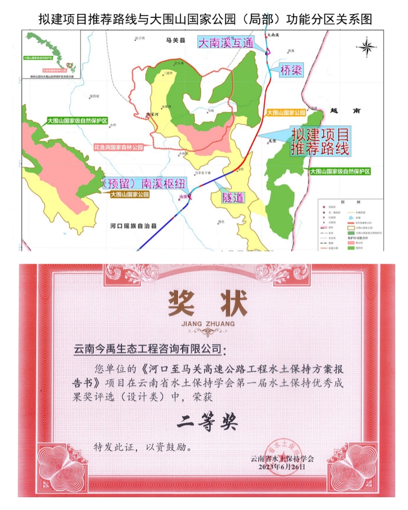 該項目存在以下技術(shù)難點:①項目屬于沿邊高速,線路走向限制因素和敏感因素較多,其中經(jīng)過云南大圍山國家級自然保護(hù)區(qū)、河口南溪河水生野生動物州級自然保護(hù)區(qū)、南溪河風(fēng)景名勝區(qū)、馬關(guān)縣古林箐省級自然保護(hù)區(qū),占用永久基本農(nóng)田、生態(tài)保護(hù)紅線、公益林等范圍。②項目橋隧比高,產(chǎn)生棄渣量較大,由于沿線限制及敏感因素問題,棄渣場選址困難,為了避讓沿線限制及敏感因素,棄渣場選址經(jīng)過多次優(yōu)化,多次復(fù)核,多次與相關(guān)管理部門協(xié)調(diào)溝通,最終選定52個棄渣場。③由于項目水保方案編制時主體設(shè)計已到初設(shè)階段,建設(shè)單位將項目以州界劃分為兩個標(biāo)段,分別委托兩家公司承擔(dān)兩個標(biāo)段的初步設(shè)計工作,主體設(shè)計分為兩部分,在水保方案編制過程中增加了數(shù)據(jù)統(tǒng)計量、項目溝通和手續(xù)辦理等方面的工作量,但為后期變更、監(jiān)測和驗收數(shù)據(jù)對比節(jié)省了較大的工作量。